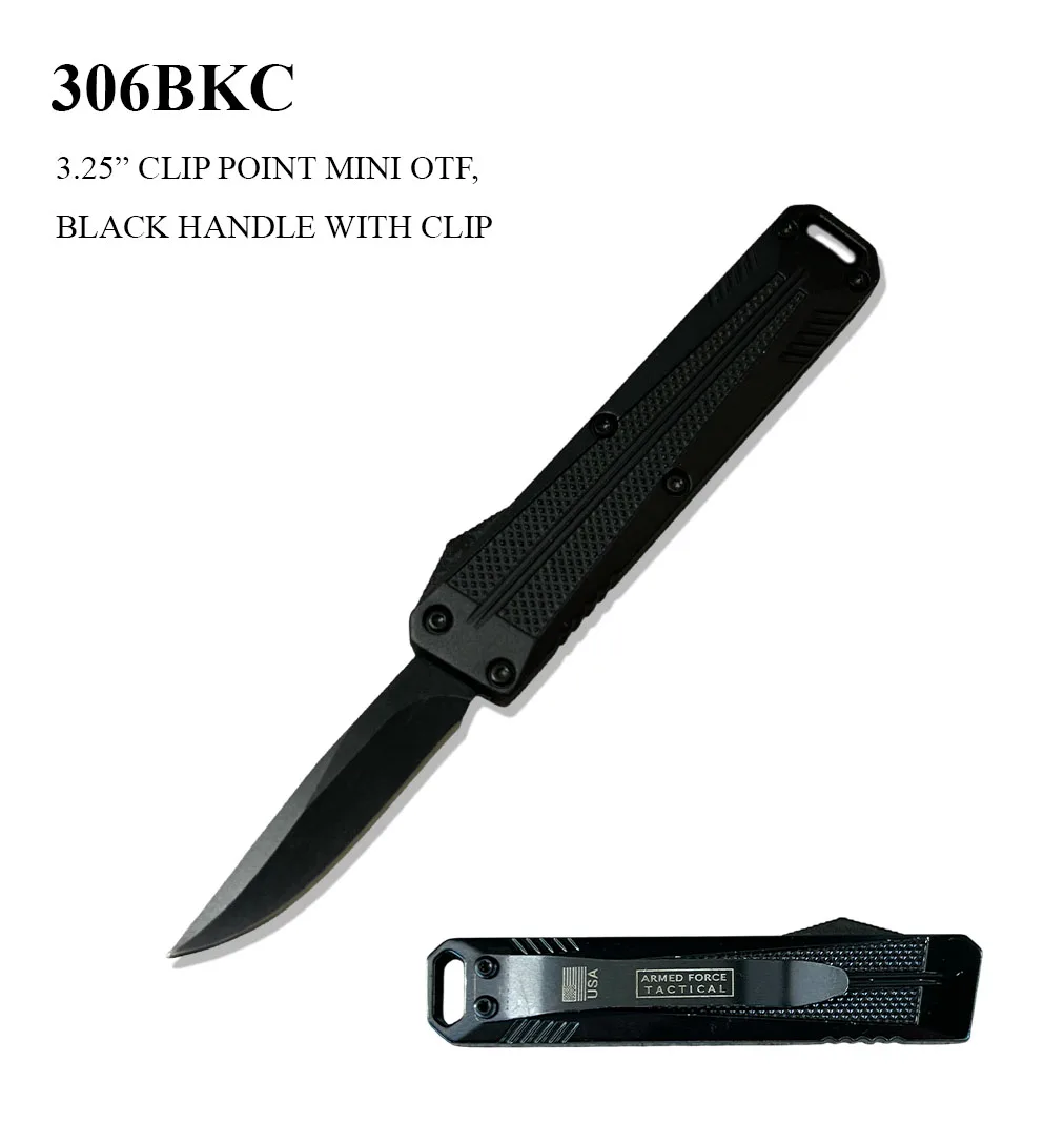 Home / Knives / OTF Knives / 306BKC – 5″ OTF Knife 306BKC – 5″ OTF Knife$1699 In stock 306BKC - 5" OTF Knife quantity Add to cart SKU: 306BKC Categories: All Products, Knives, OTF Knives Tags: Dagger Blade, Knife, OTF, Pocket Knife Product ID: 335240 Description Additional information Reviews (0) Description 306BKC 5″ OTF KNIFE OTF AUTOMATIC KNIFE 3.25″ CLOSED, 5″ OVERALL, STAINLESS STEEL CLIP POINT, BLACK ZINC ALLOY HANDLE WITH CLIP Additional information Color Black Reviews There are no reviews yet. Be the first to review “306BKC – 5″ OTF Knife” Cancel replyYou must be logged in to post a review. Related products TK 801-310SK 3PIECE THROWING KNIFE SET $1599 RT 4853-P 14″ BLACK FULL TANG KUKRI BLADE HUNTING AND COMBAT KNIFE $1999 MT-20-08L MACHETE 25″ OVERALL $4999 TK-015 9″ THROWING KUNAI KNIFE $1399