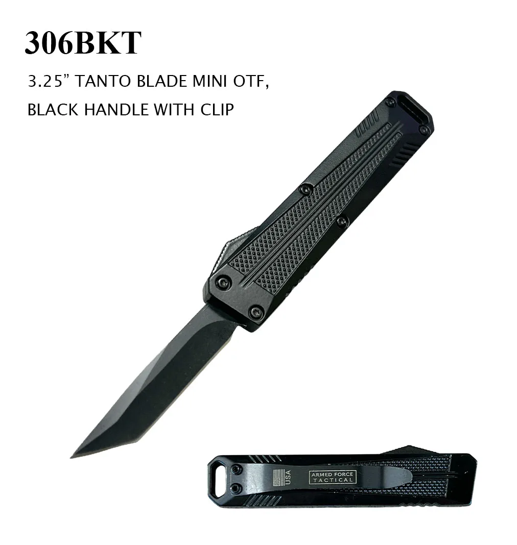 Home / Knives / OTF Knives / 306BKT – 5″ OTF Knife Tanto Blade 306BKT – 5″ OTF Knife Tanto Blade$1999 In stock 306BKT - 5" OTF Knife Tanto Blade quantity Add to cart SKU: 306BKT Categories: All Products, Knives, OTF Knives Tags: Dagger Blade, Knife, OTF, Pocket Knife Product ID: 335241 Description Additional information Reviews (0) Description 306BKT 5″ OTF KNIFE TANTO BLADE OTF AUTOMATIC KNIFE 3.25″ CLOSED, 5″ OVERALL, STAINLESS STEEL TANTO BLADE, BLACK ZINC ALLOY HANDLE WITH CLIP Additional information Color Black Reviews There are no reviews yet. Be the first to review “306BKT – 5″ OTF Knife Tanto Blade” Cancel replyYou must be logged in to post a review. Related products 10-A41BFL SPRING ASSISTED KNIFE $1075 RT 4853-P 14″ BLACK FULL TANG KUKRI BLADE HUNTING AND COMBAT KNIFE $1999 Z-1015-SL-3 3 PC Bat Throwers $1999 228BK OTF AUTOMATIC KNIFE $5299